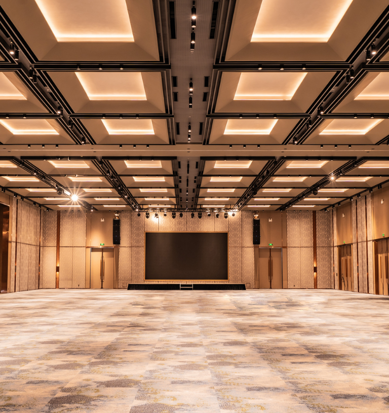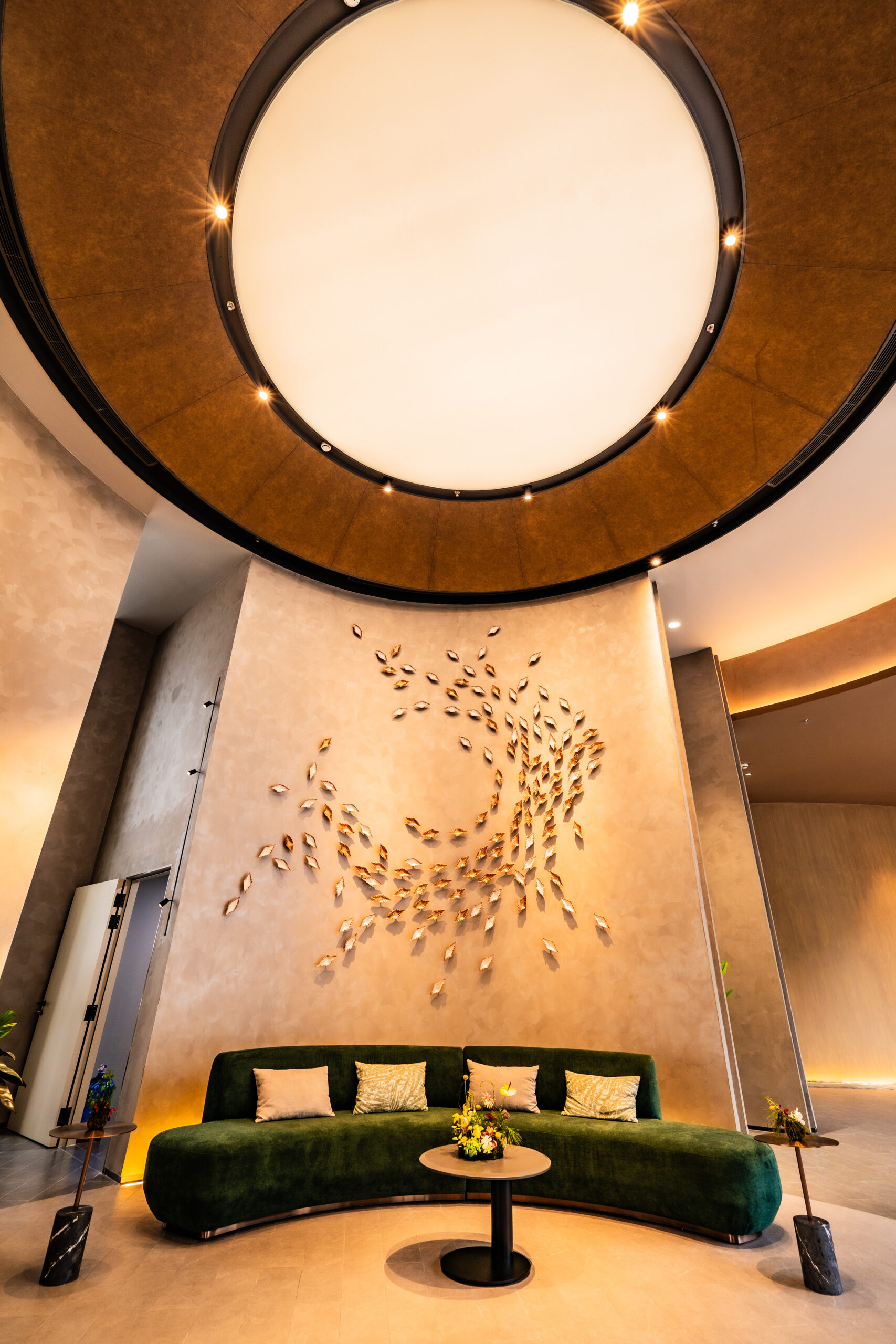 The grand reception area at The Galleria boasts elegant, flowing architectural lines inspired by the ocean’s waves.